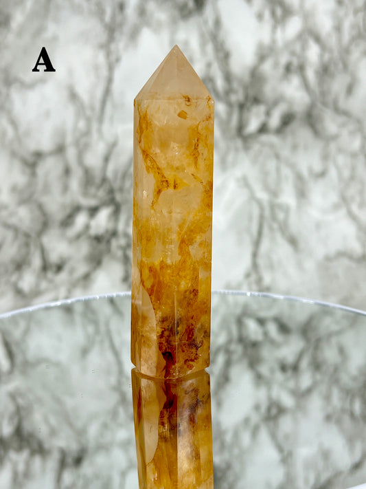 Fire Quartz Diamond Carving π Rainbow Inclusions