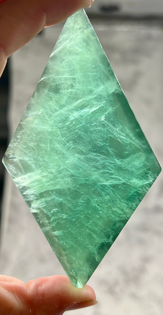 Green Fluorite Rhombus Carving with Stand