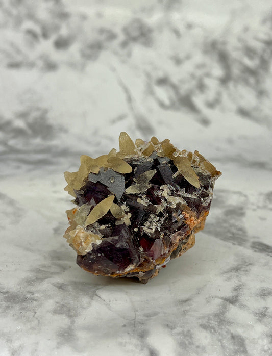 Dogtooth Calcite & Purple Fluorite Specimen