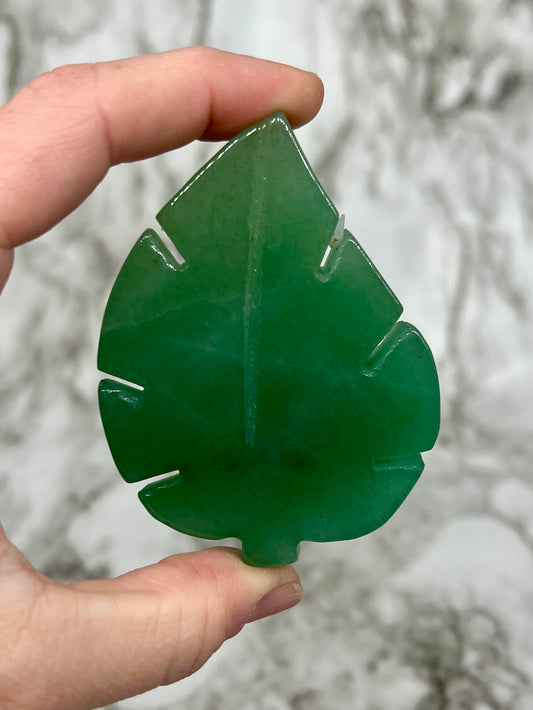 Green Aventurine Monstera Leaf Carving