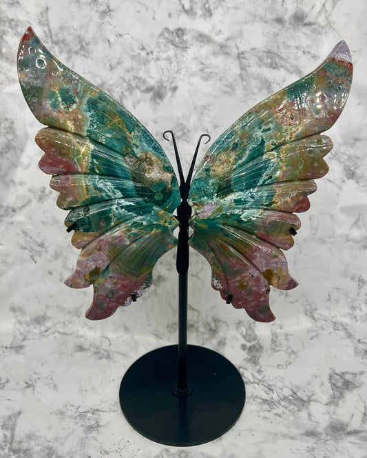 Ocean Jasper Butterfly Wing Carvings with Stand