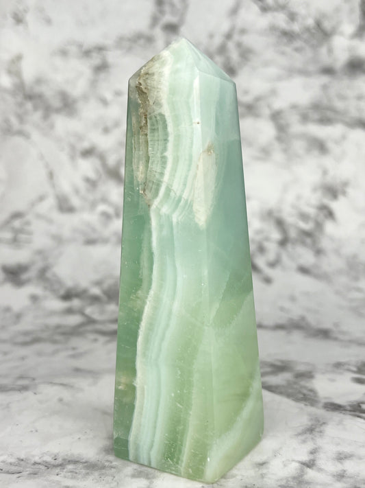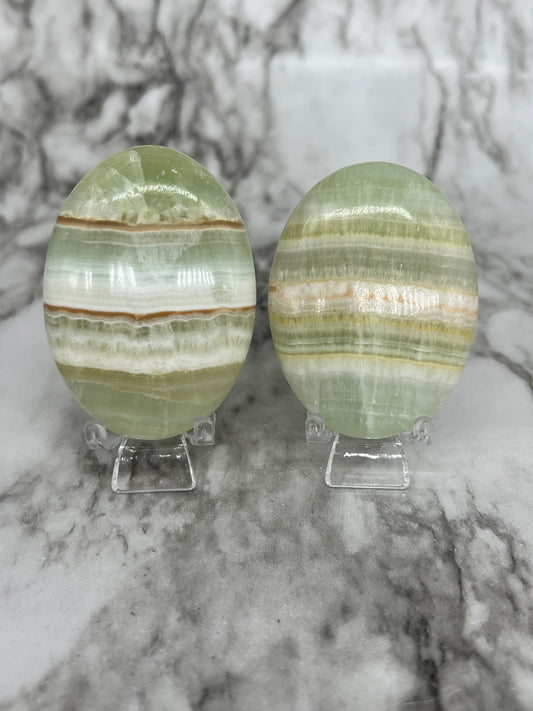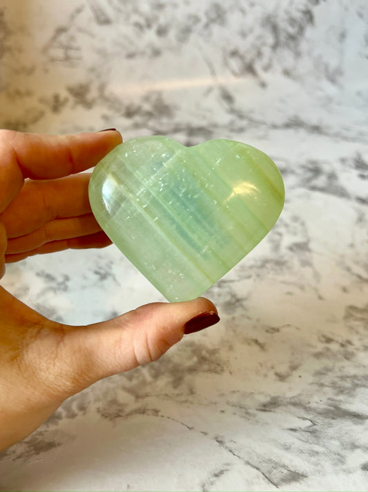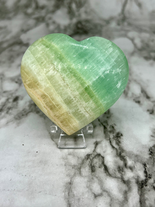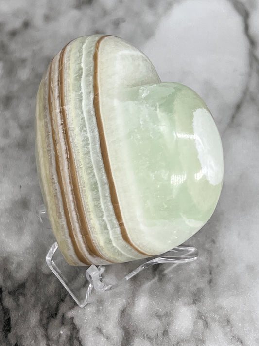 Banded Pistachio Calcite Heart π Rainbow Inclusions