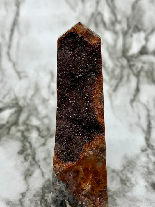 Red Druzy Sphalerite & Quartz Tower