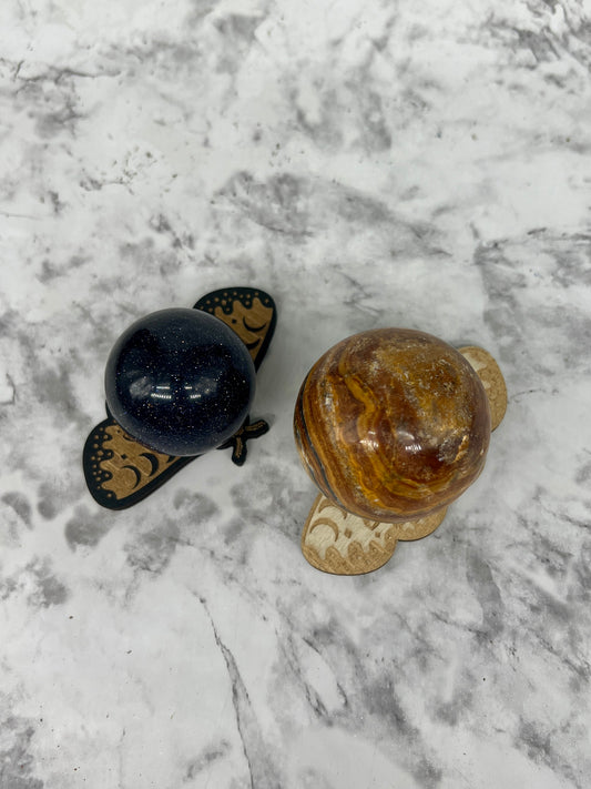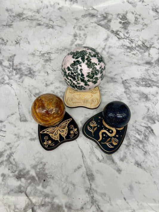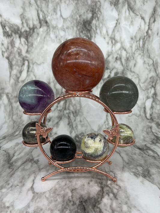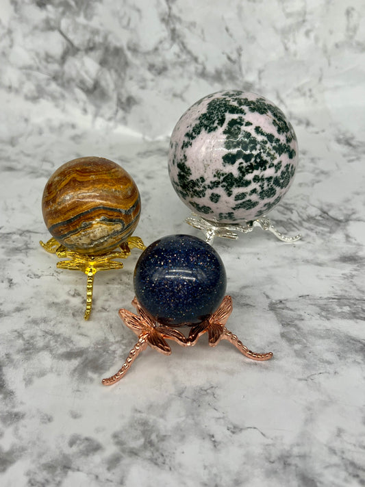 Strawberry Jasper Butterfly Sphere Holder / Carving