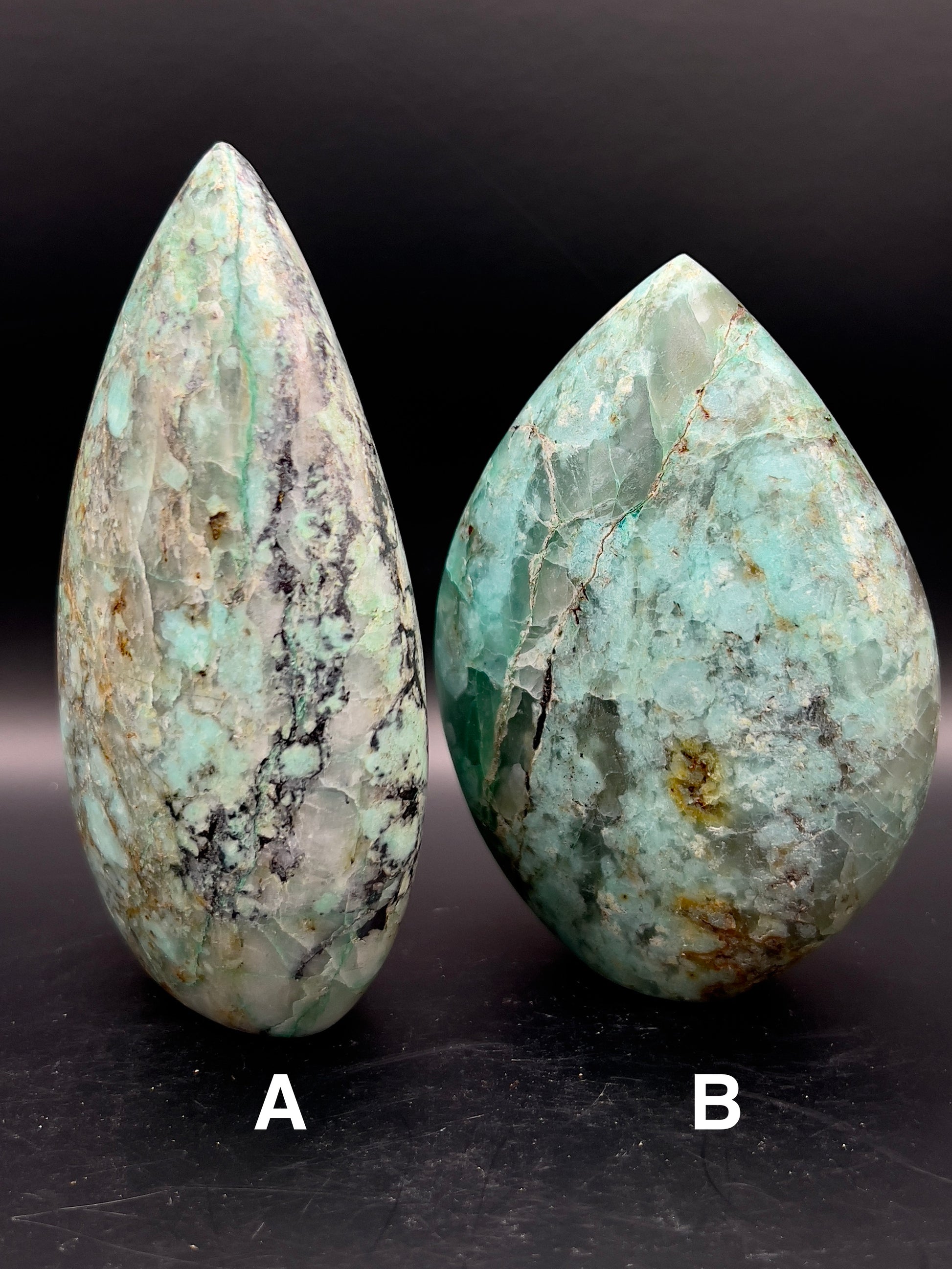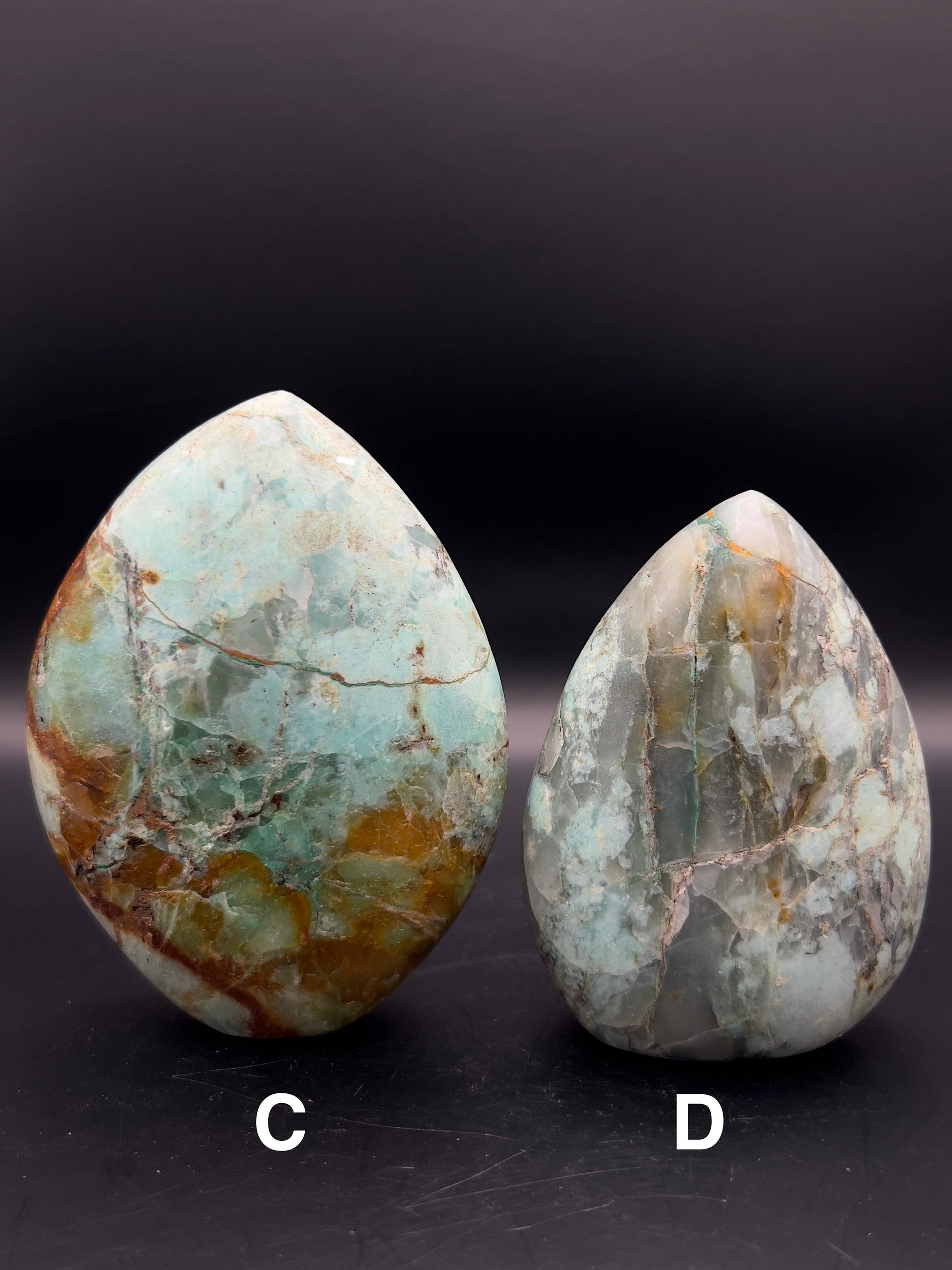 Amazonite & Smokey Quartz Flame Carving / Freeform